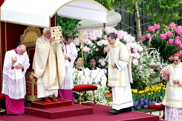 O Santo Padre não faz a homilia, pois à Missa seguirá a bênção “Urbi et Orbi“ da sacada central da Basílica, com as saudações pascais. Fazem assistência ao Papa os Cardeais-diáconos Jean-Louis Tauran (Cardeal protodiácono) e Raymond Leo Burke (n.e. Presidente do Pontifício Conselho para o Diálogo Interreligioso e Prefeito da Assinatura Apostólica, respectivamente).