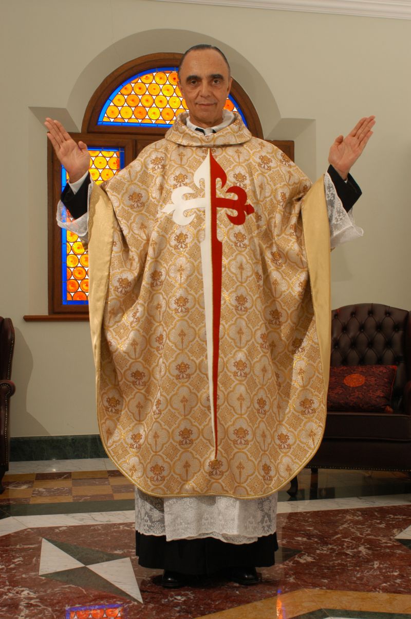 Sua Ex.cia Dom Fernando Rifan impõe-se o amito durante paramentação